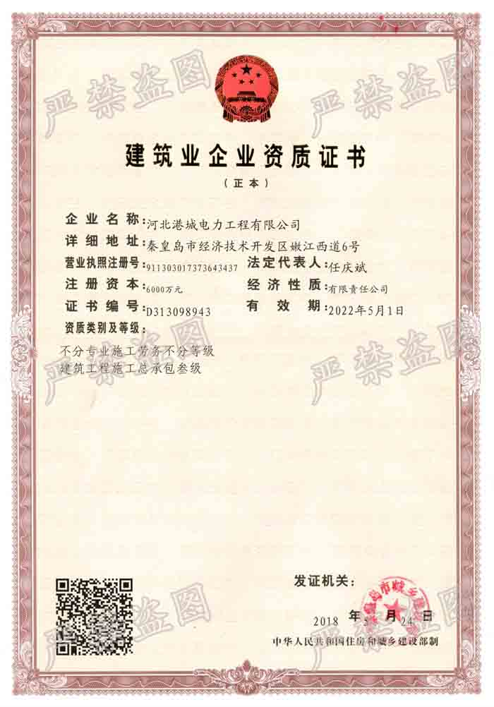建筑業(yè)企業(yè)施工資質(zhì)證書